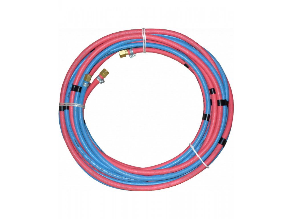 Kompletní autogenní hadice kyslík+acetylen, spojené páskou, vybavené pojistkami proti zpětnému proudění plynu BV 12.