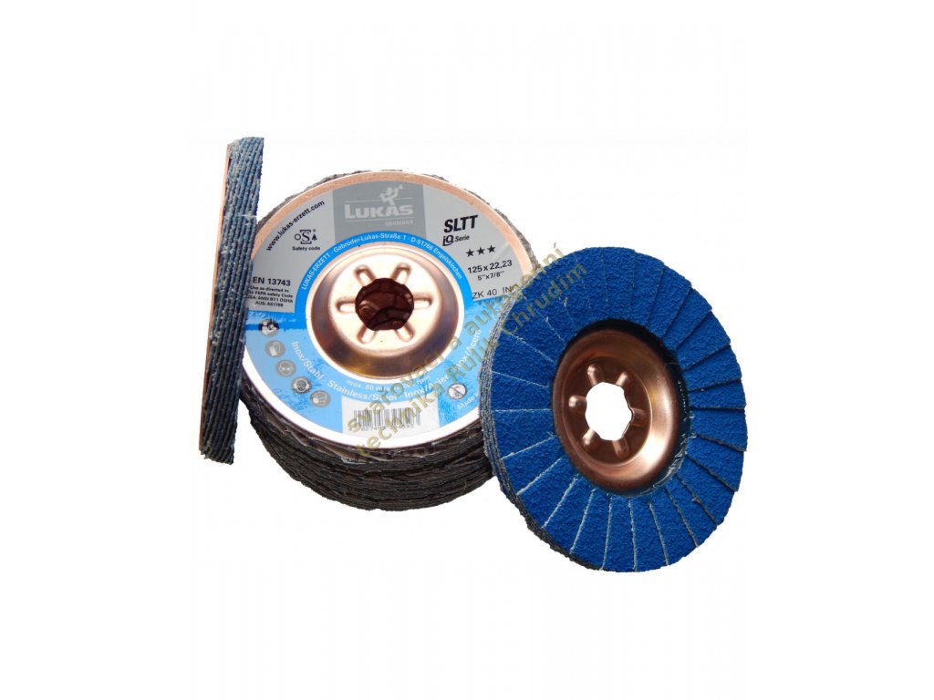 TURBO kotouč určený pro opracování nerezových ocelí s kovovým unašečem a lamelami ze zirkonkorundu s aktivní vrstvou na povrchu. Žádné zesklovatění nebo zahřívání lamel, stejná účinnost na hranách i na povrchu, bez obsahu železa, síry a chlóru.