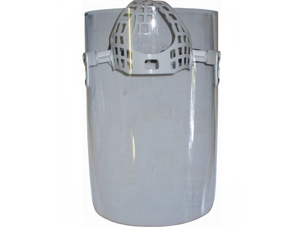 Štít pro ochranu obličeje, zraku a krku při běžné práci, např. při broušení, řezání, sekání a další práci.