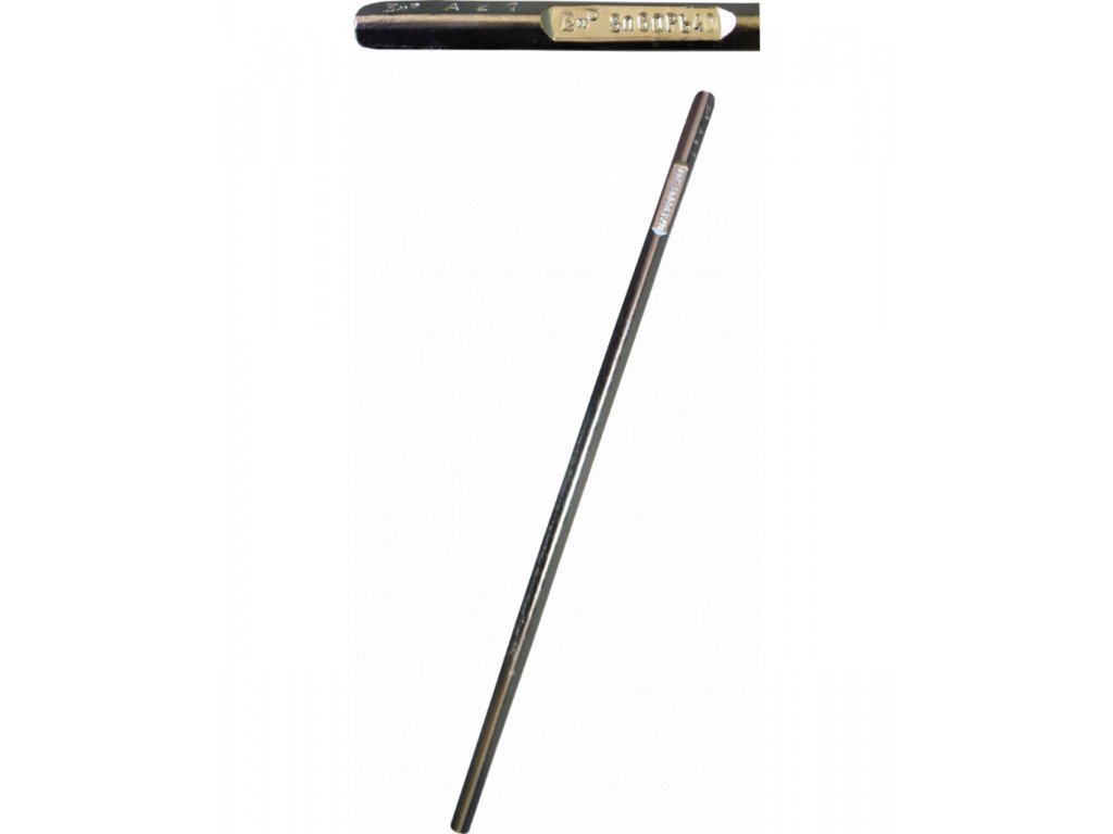Cínová pájka Sn60Pb40 pro klempířské pájení a další použití. Dodává se ve formě tyčí, délka 50cm, hmotnost cca 330 gramů za kus. Cena je uvedená za kilogram, v objednávce uveďte požadovanou hmotnost.