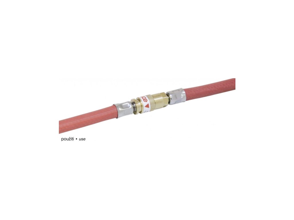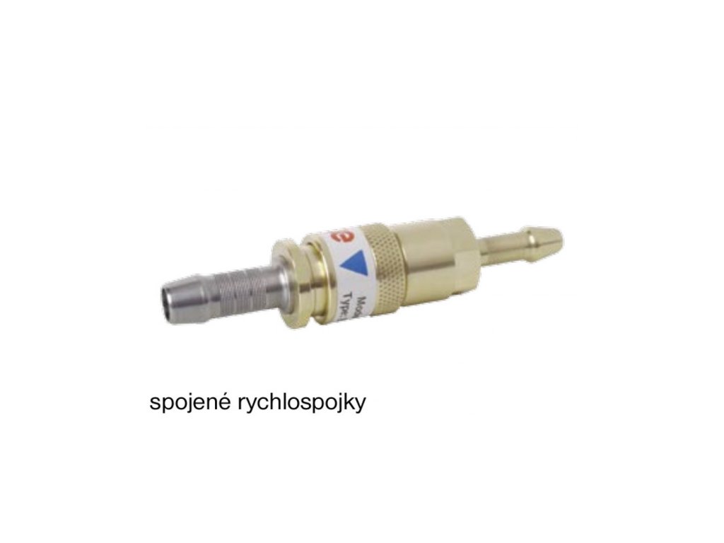 Šipka na těle rychlospojky určuje směr průtoku plynu. Pokud dojde k rozpojení hadic, je automaticky průtok plynu uzavřen.