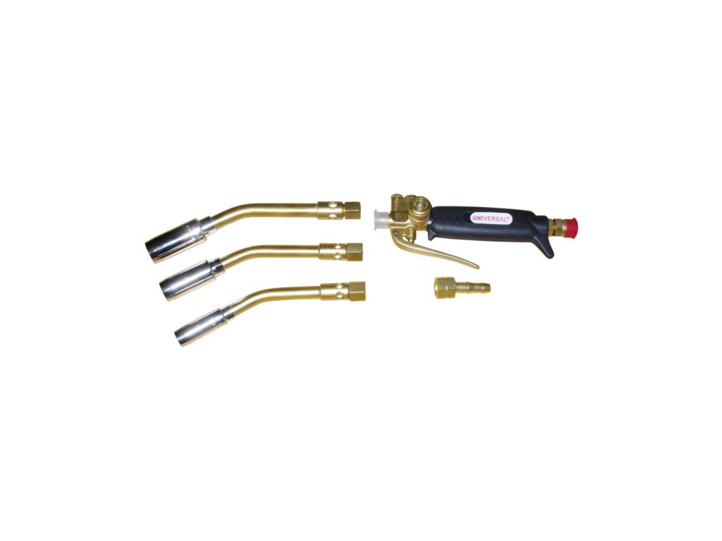 Sada za zvýhodněnou cenu obsahující rukojeť Universal se spořičem, hadicový nástavec pr.8mm s maticí G3/8 LH, pájecí hořák TURBO T14 + T17 + T20. Sada neobsahuje hadici a nástavec s maticí pro připojení k tlakové lahvi. Pro provoz není třeba redukční ventil nebo regulátor.