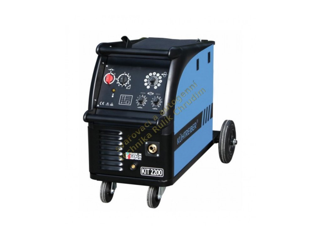 KIT 2200 je profesionální svařovací stroj vybaven výkonným transformátorem, robustním posuvem drátu s výkonným motorem, EURO konektorem a řídící elektronikou. Hlavní předností strojů KIT jsou vynikající svařovací svařovací vlastnosti, 10ti stupňová regulace napětí, možnost vysokého zatížení stroje díky nové konstrukci, moderní design, spolehlivost a jednoduché ovládání.
